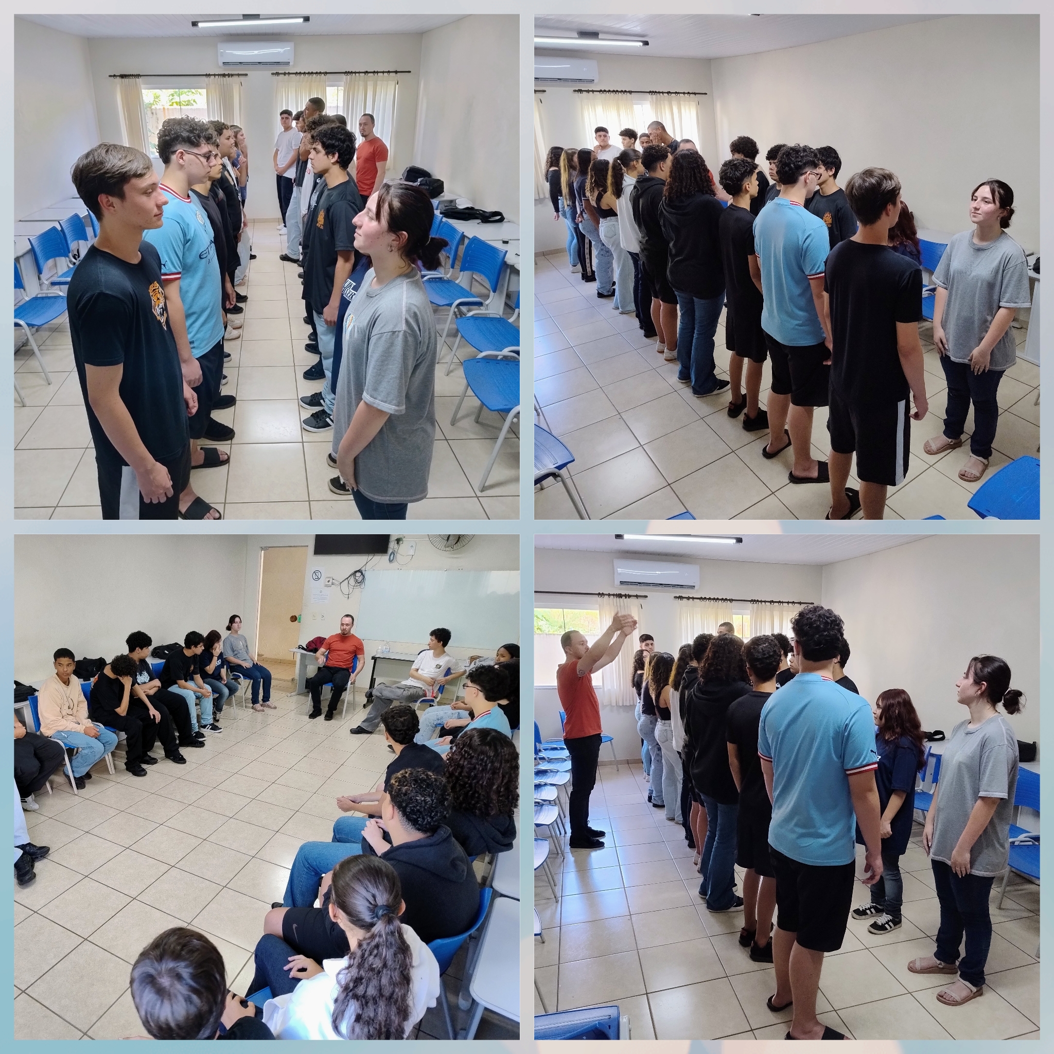 A Legião Mirim está promovendo o curso de Garçom e Atendimento ao Cliente, voltado à preparação dos adolescentes para o mercado de trabalho. Durante o encontro da semana, foram realizadas atividades dinâmicas conduzidas pelo professor Wellington, com foco no aprimoramento da comunicação, postura profissional e expressão corporal.
